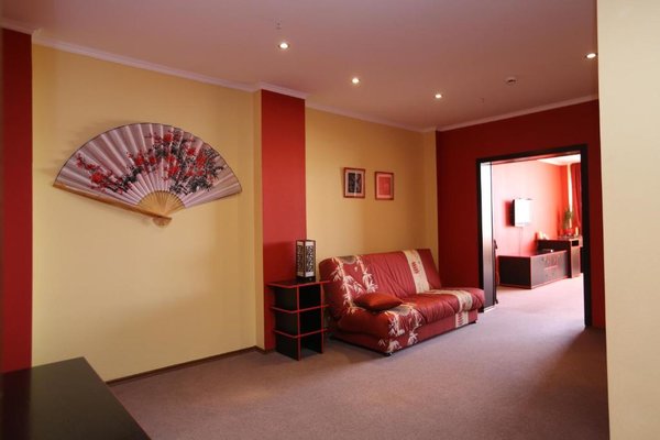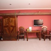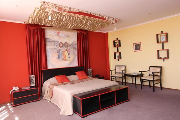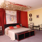 Уникальный дизайн-ход «Ковчега» - оформление помещений в индивидуальной стилистике. Каждый номер олицетворяет отдельную страну, что символизируется в мебели, предметах интерьера и художественной росписи стен. Всего таких маленьких кусочков государств 8. Внутри установлены ЖК-телевизор, электрический чайник, отдельная ванная комната, фен, кондиционер.