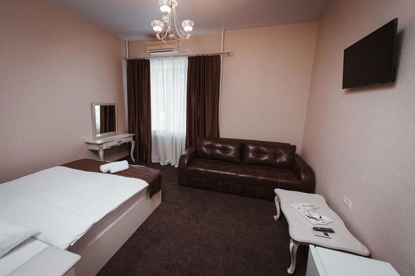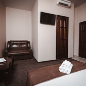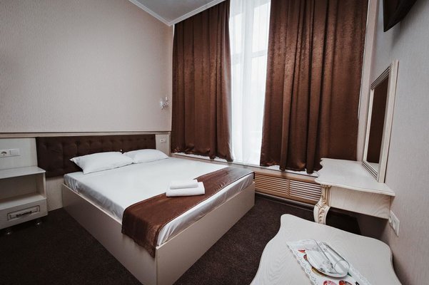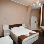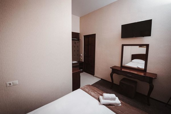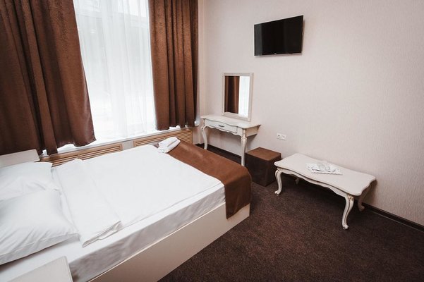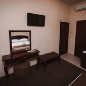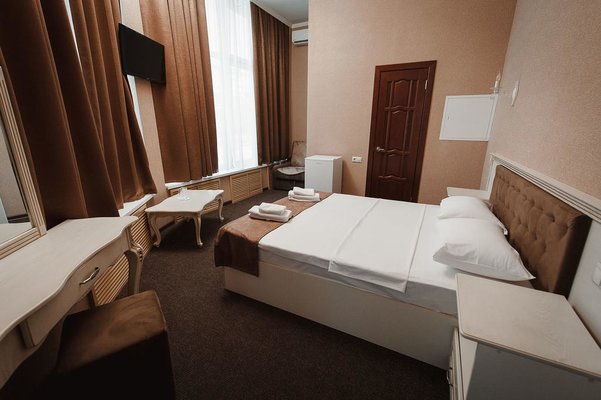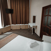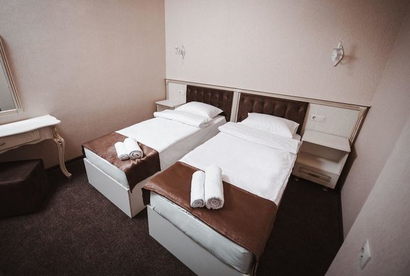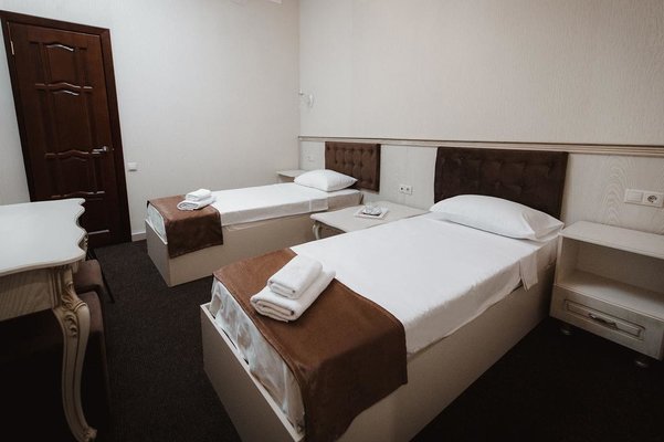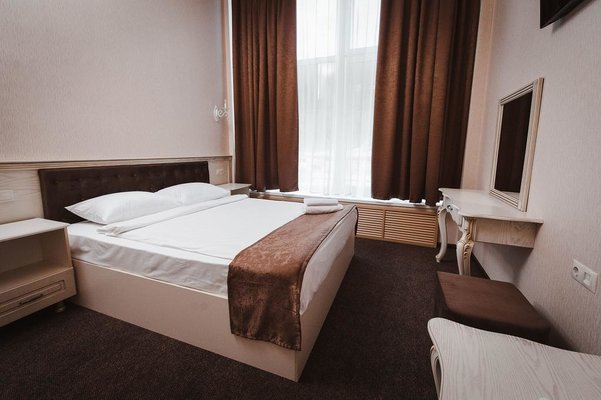 Номерной фонд представлен категориями "Эконом", "Стандарт", "Полулюкс" и "Люкс". Интерьер комнат выполнен в классических светлых тонах. Проживающие пользуются собственной ванной комнатой с душем и туалетом.