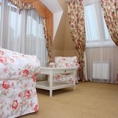 В номерном фонде отеля насчитывается 18 комфортных и уютных номеров, которые поделены на различные категории. Они оформлены в светлых, приятных тонах и обустроены удобной мебелью и необходимой техникой. В каждом номере есть собственная ванная комната, в которой, помимо душа, туалета и раковины есть туалетные принадлежности, халат, тапочки и набор полотенец.