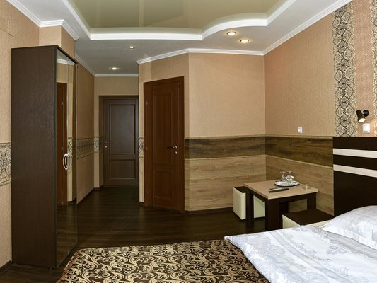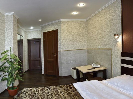 Номерной фонд оформлен в стиле домашнего уюта. Для размещения предусмотрено несколько категорий, оснащенных как общими, так и собственными ванными комнатами. Из мебели присутствует все необходимое для комфортного проживания.