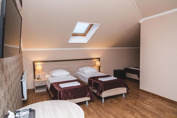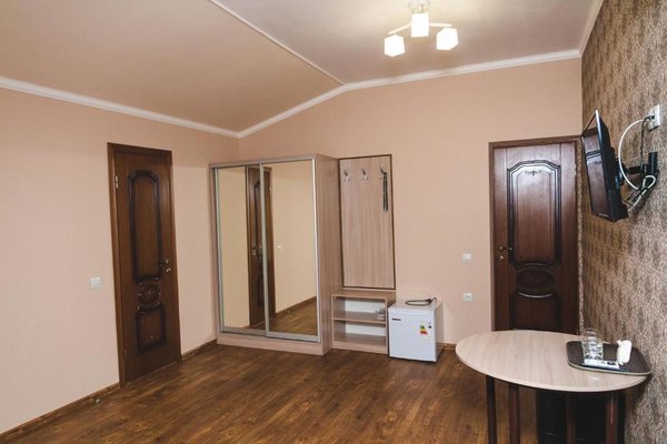 К услугам 22 номера различных категорий со звукоизоляцией, кабельным телевидением и гостиным уголком. Внутренняя атмосфера способствует созданию подходящего настроения для отдыха. Из окон открывается чудесный вид на окрестности. Новых гостей, которые могут заехать в любое время суток, зарегистрируют в ускоренном режиме. Новобрачным предоставляются специальные условия. Для детей установлены защитные барьеры.