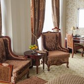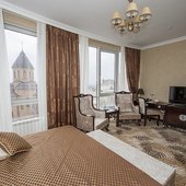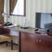 Каждый номер оформлен в классическом стиле и оснащен качественной мебелью с отделкой из темного дерева, техникой, включая кондиционер, а также собственной ванной комнатой. Все категории располагают прекрасным видом на город.