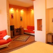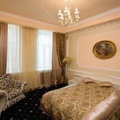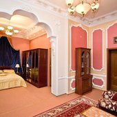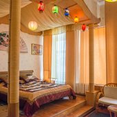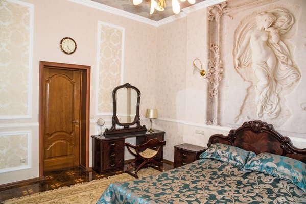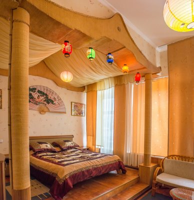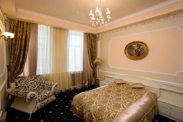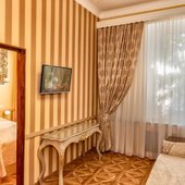 Интерьеры номеров выполнены в индивидуальном стиле: люкс «Наполеон», «Петр I», «Итальянский», полулюкс «Принцесса», «Восточный», стандарт «Мексиканский», «Классический» и другие. Каждый из них оснащён всем необходимым, от персональной ванной комнаты до кондиционера, телевизора и чайного набора.
