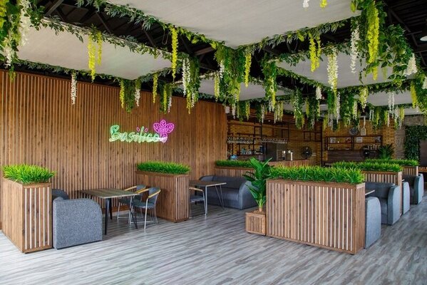 «Basilico» способен вместить до 60 гостей и предлагает стильную атмосферу, где каждый прием пищи становится настоящим праздником.