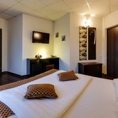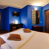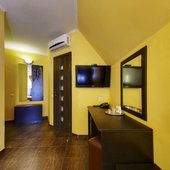 Для размещения предлагаются комфортабельные номера категории "Стандарт", "Полулюкс" и "Люкс". Во всех комнатах имеются удобные кровати, качественная мебель, индивидуальная система кондиционирования, ЖК-телевизор. Санузел укомплектован душем, туалетом и раковиной. Уборка в номерах проводится ежедневно.