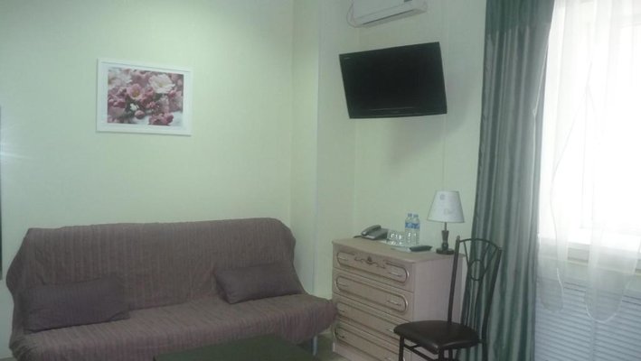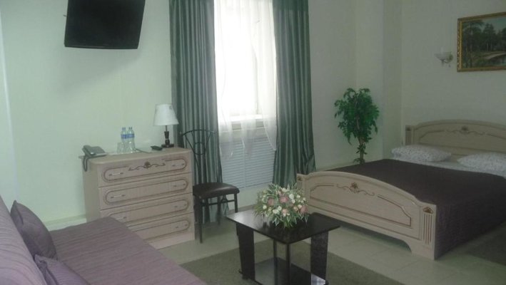 Интерьер номеров выполнен в классическом стиле и обставлен современной мебелью. Телевизор, кондиционер и ванная комната с душем и санузлом есть в каждом номере.