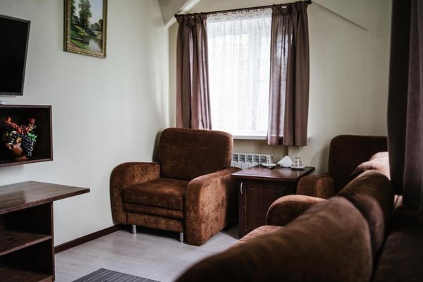 Номера и срубы оснащены всем необходимым для комфортного и длительного отдыха. Имеется мягкая стильная мебель, современная техника. В собственной ванной комнате предоставляется душ, туалет, раковина, набор полотенец и мыльные принадлежности. По запросу осуществляется доставка продуктов и напитков в номер.
