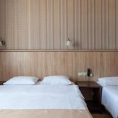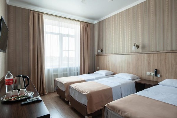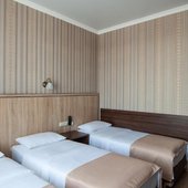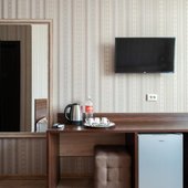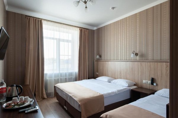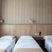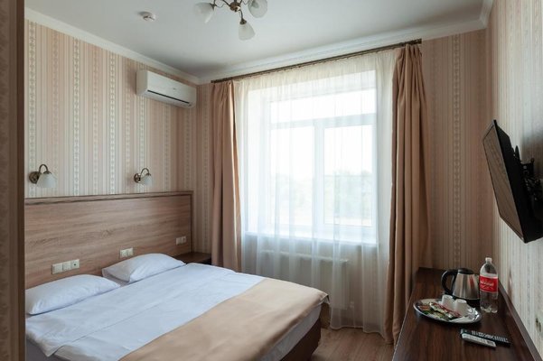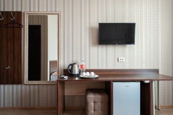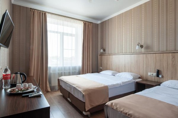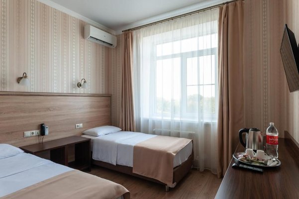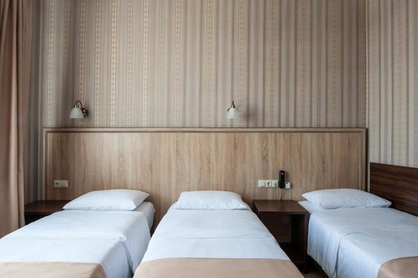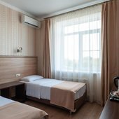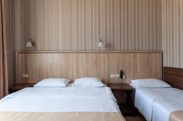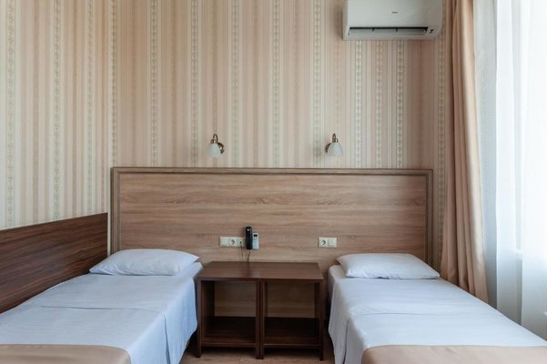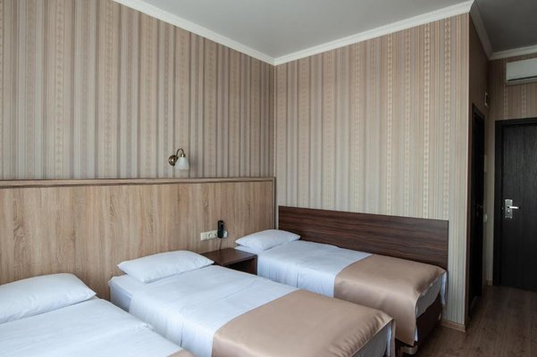 Номерной фонд представлен уютными и светлыми номерами различных категорий. Разместиться в них можно от двух до трех человек. В каждом из них есть все необходимое для комфортного проживания: спальное место, где можно будет отдохнуть после длительного переезда, телевизор и кондиционер. Ванная оборудована стандартным набором сантехники со встроенным феном, гигиеническими принадлежностями и свежими полотенцами.