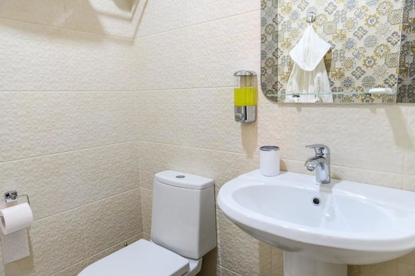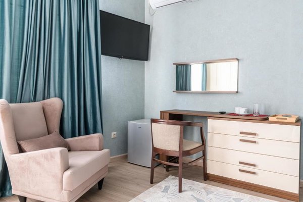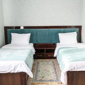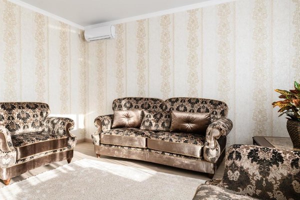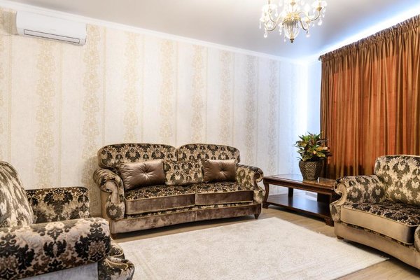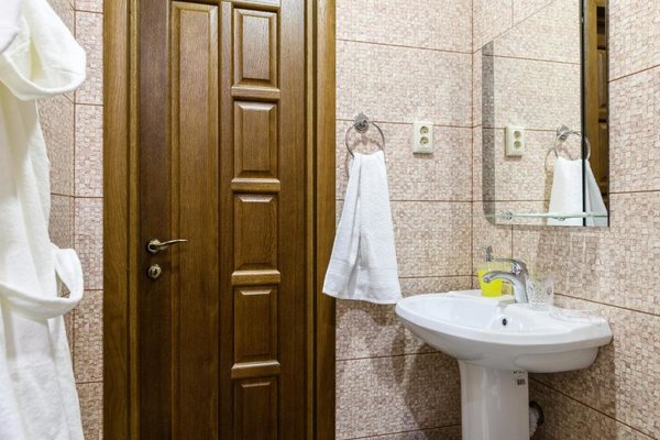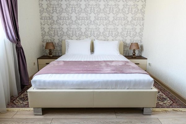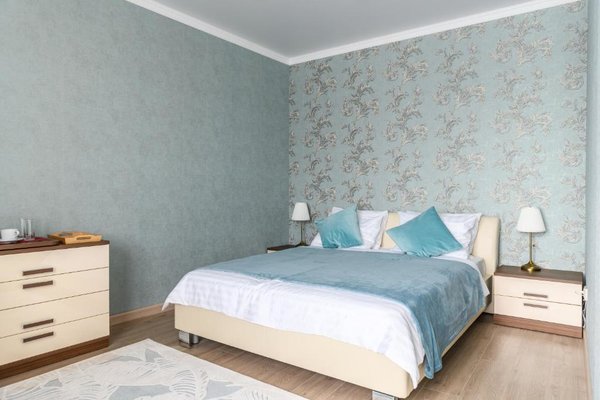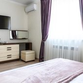 Апартаменты выполнены в современном стиле, в нежных постельных тонах. В просторных спальнях разной вместимости, имеется все, для комфортного времяпровождения: кондиционер, удобная двухспальная кровать, чистое белье, мягкая мебель, телевизор с плоским экраном, шкаф, письменный стол, кресло, большое зеркало, лампы, холодильная камера. Собственная ванна с бесплатными средствами личной гигиены.