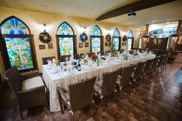 При отеле есть ресторан, который готов обеспечить всех посетителей вкусными блюдами - будь это легкий завтрак или пышный банкет. Для последнего оборудован целый зал, где можно собраться в шумной компании и попробовать напитки из собственной пивоварни отеля.