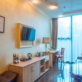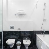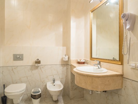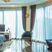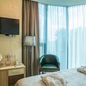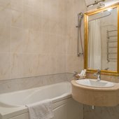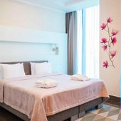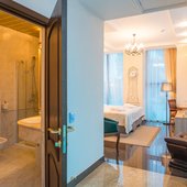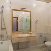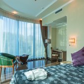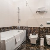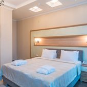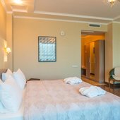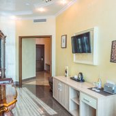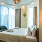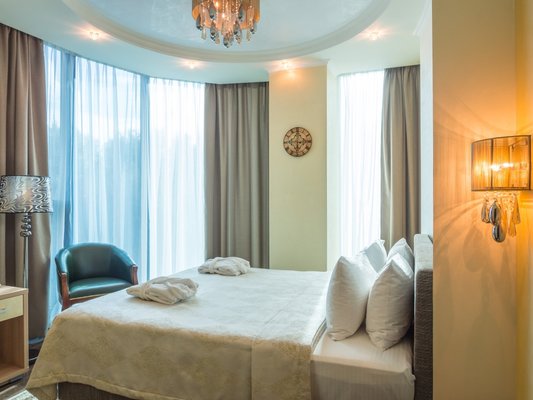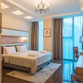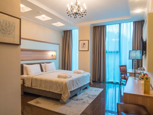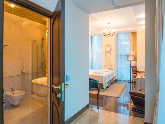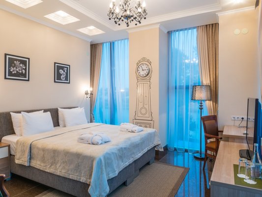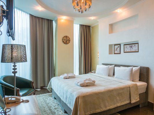 Номера представлены категориями "стандарт", "студио", "люкс", "апартаменты". В ванных комнатах имеется душ, туалет, раковина и набор полотенец.