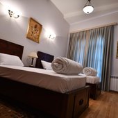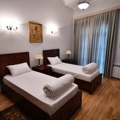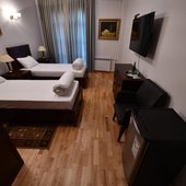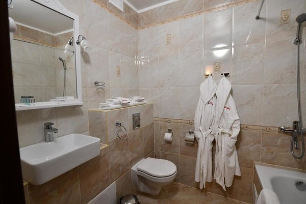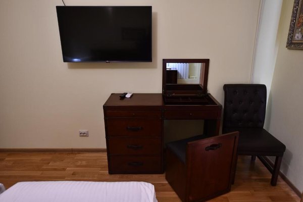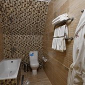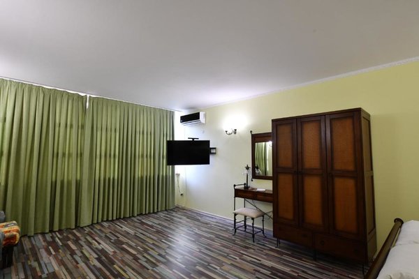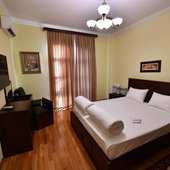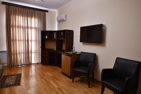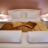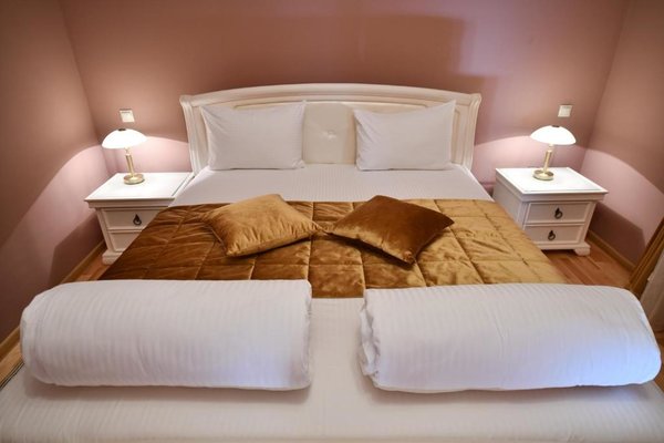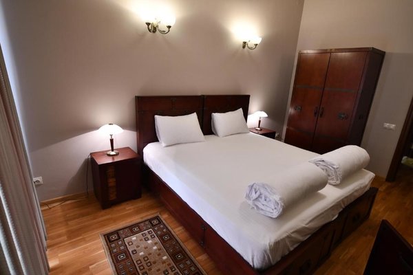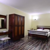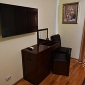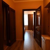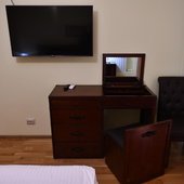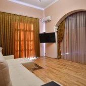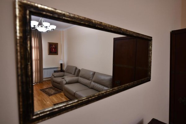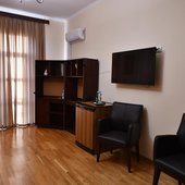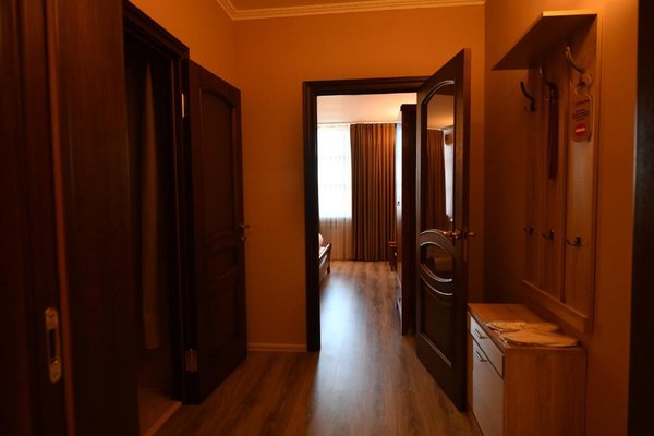 Для гостей подготовлены стильные номера с необходимой мебелью: кровати, телевизоры с плоским экраном, шкафы для одежды, прикроватные тумбы, туалетный столик. В общей гостиной зоне располагается кожаный диван и кресла. В просторной собственной ванной комнате установлены: ванна, санузел, раковина, зеркало. В числе прочих удобств предметы личной гигиены, скоростной интернет, охраняемая парковка, прачечная, детские телеканалы.