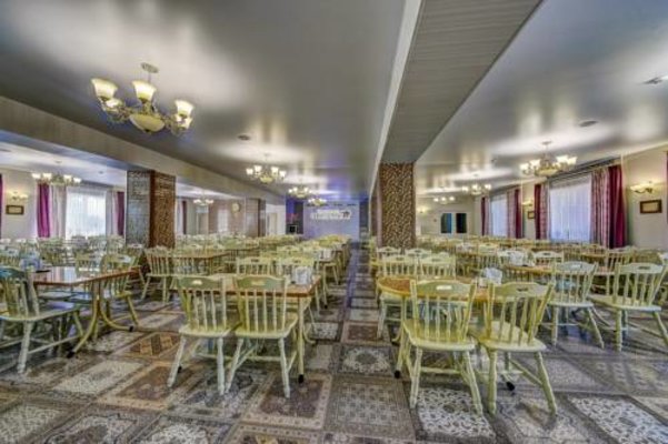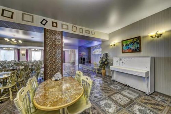 В кафе подаются блюда русской кухни. Заказать еду можно в номер.