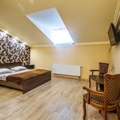 Номерной фонд представлен классическими номерами категории "люкс","делюкс", "семейный" и "стандарт". В каждом имеется телевизор, кондиционер, электрочайник, чайный набор и ванная комната с джакузи, есть один номер с душем. Wi-Fi работает на всей территории.