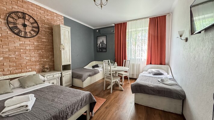 Добро пожаловать в гостевой дом «Ростов Казачий» в Ростове-на-Дону. Здесь вас ждет атмосфера настоящего домашнего тепла. Удобное расположение всего в 4 км от центра города позволит легко добраться до популярных мест отдыха, таких как Парк имени Плевен, Ботанический сад ЮФУ и парк аттракционов «Сказка». В номерах предусмотрены телевизоры для приятного завершения дня. Ванная комната имеется во всех категориях номеров, кроме «Эконом». На всей территории работает бесплатный Wi-Fi, а для автопутешественников предусмотрена парковка. К вашим услугам также прачечная и гладильные принадлежности.