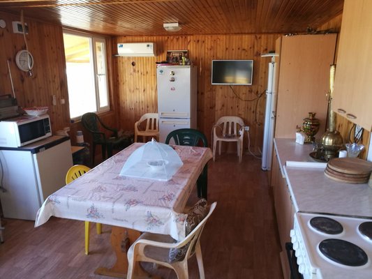 Все хреново!!!! Туалет засрат и даже не закрывается!!!! Один на всю базу!!!! Кухни вообще нет!!!!