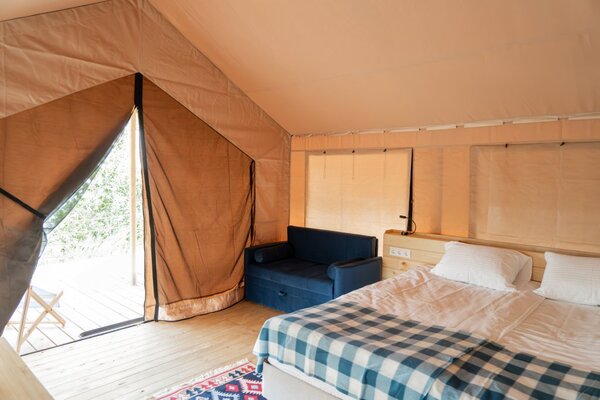 Уютные тент-хаусы, спрятанные в лесной чаще или на берегу реки, обеспечат вам комфортное проживание. Внутри каждого дома вас ждет все необходимое для приятного времяпрепровождения.