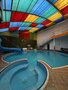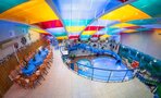 Центр аквазоны — большой плавательный бассейн — разделен на пространства водопадов, гейзеров, противотоков и аттракционов.