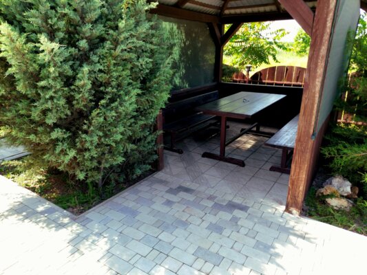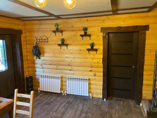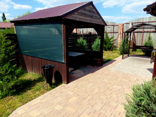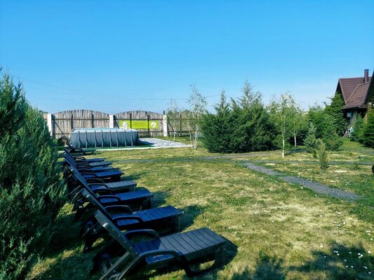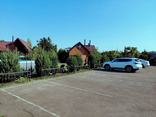 Каждый коттедж окантован забором. В вашем распоряжении — беседка и крытая зона для барбекю. В каждом доме установлена баня на дровах. С сентября по июнь у гостей есть собственная купель. Для удобства предусмотрен закрытый паркинг с видеонаблюдением и круглосуточным доступом.