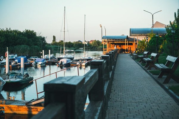 На охраняемой и огороженной территории есть парковка для личного авто. Для маленьких гостей оборудована детская площадка. Любители активного досуга могут поиграть в теннис, футбол или волейбол на специальной площадке с газоном и ограждением. Прогуливаясь по клубу можно осмотреть территорию. Расположение на берегу реки привлекает сюда множество рыбаков круглый год, здесь можно поймать по настоящему трофейные экземпляры.