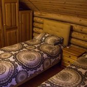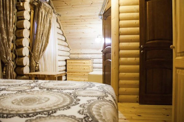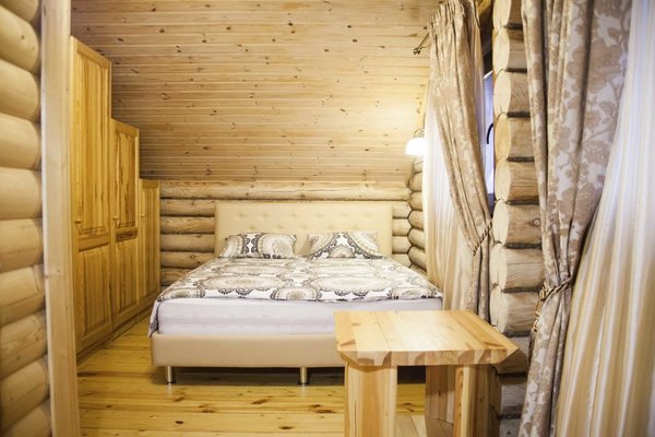 Для проживания предлагаются номера различных категорий и вместимостью до 4 человек, выполненные из натурального деревянного бруса и оборудованные современной техникой. Также, можно забронировать лесной домик, в котором есть 3 спальни и собственная кухня.