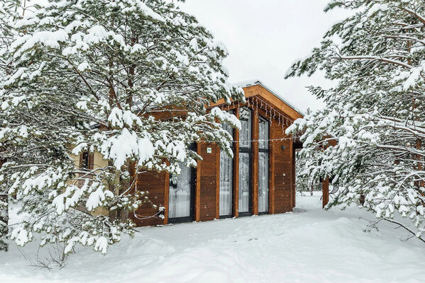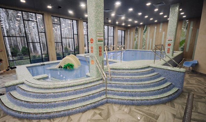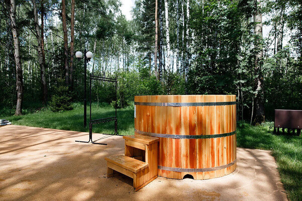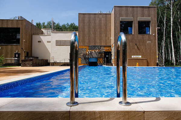 Теплый бассейн под открытым небом среди соснового и березового леса — ваше идеальное расслабление жарким летом, золотой осенью, белоснежной зимой или расцветающей весной.