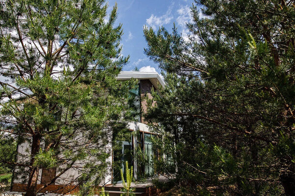 Проведение занят среди соснового леса: зал "Здоровья" с панорамными окнами, сцена в сосновом лесу, вегетарианское меню.
