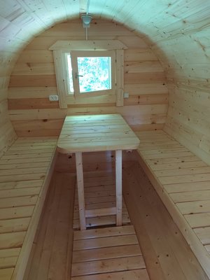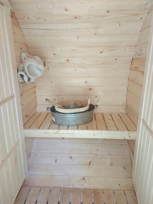 Баня для небольшой компании (до 6-х человек). 3 отделения: раздевалка, парилка и комната для отдыха со столом и лавками.