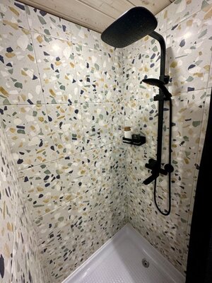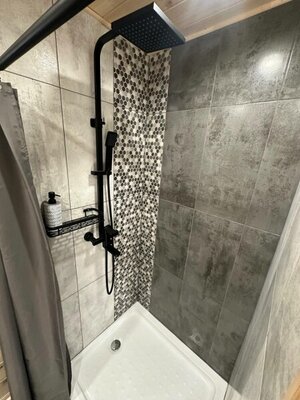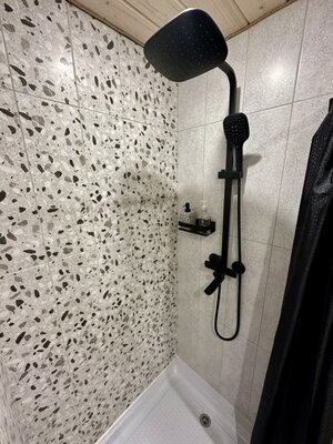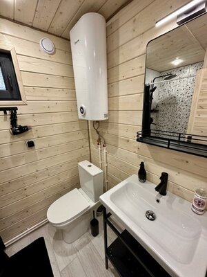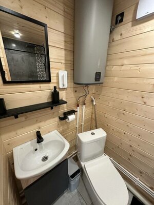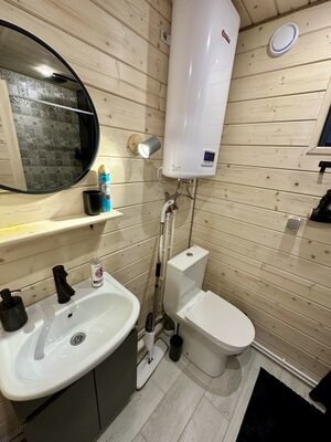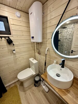 - современная ванная комната с бойлером, душевой кабиной, туалетом, банными принадлежностями и феном;