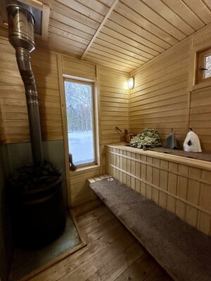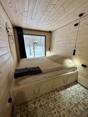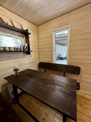 В проживание в Домике с баней включена аренда собственной бани, стоящей рядом.