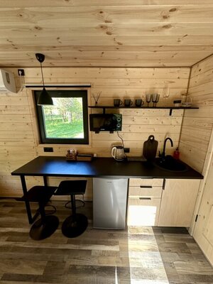 - оборудованная кухня с холодильником, чайником, плитой, посудой и столовыми приборами;