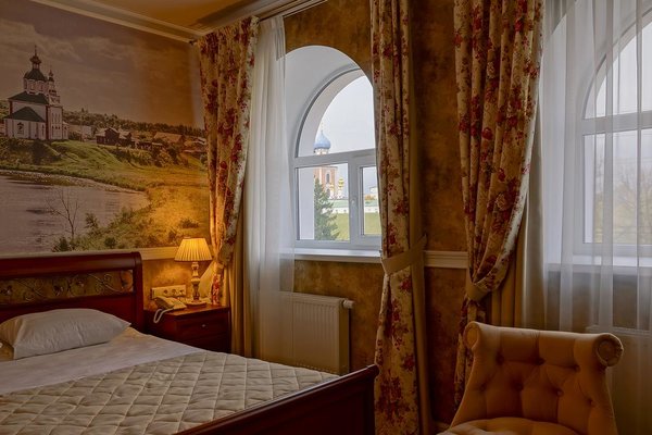 Поездом до ж/д вокзала г. Рязань-1, далее на троллейбусе №41 до ост. «Кремль», далее пройти пешком 300 м до отеля.