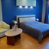 Финская сауна, рассчитанная на 8 человек включает в себя: 2 комнаты для отдыха с телевизором, мягкой мебелью, большой обеденный стол, камин, бассейн с соленой водой (имитация морской воды) с каскадом.