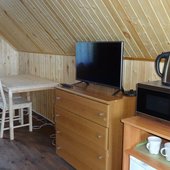 Для проживания на территории базы отдыха расположены 8 жилых домов. Интерьер номеров спокойный и ненавязчивый, в то же время уютный и по-домашнему теплый. В каждом номере есть туалет с душем, микроволновая печь, холодильник, телевизор, интернет, а также есть возможность установки дополнительного места.