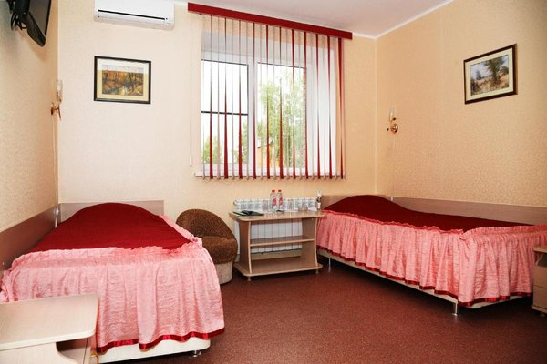 В гостинице 18 номеров различного класса: 2 люкса,1 комфорт, 6 одноместных, 7 двухместных и 2 эконом. В каждом номере (кроме эконом-класса)есть душевая кабина, туалет, телевизор, Wi-Fi. Гостиница имеет стоянку оборудованную видеонаблюдением. К услугам гостей уютное кафе и русский бильярд.