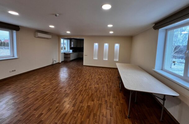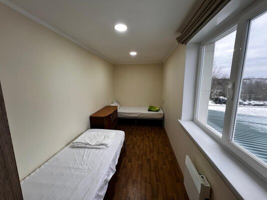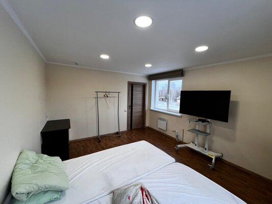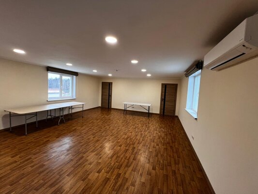 Для размещения предлагается 2-й этаж с кухней, санузлом (душевая кабина), большим залом (35 м²) и двумя спальнями. Зал идеально подходит для проведения мероприятий, тренингов и игр.