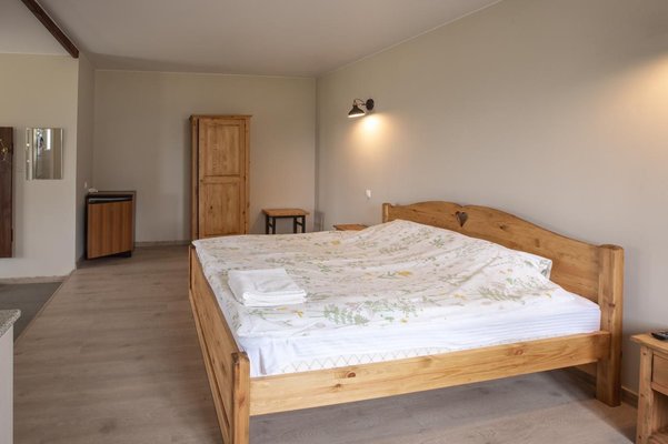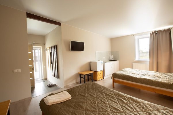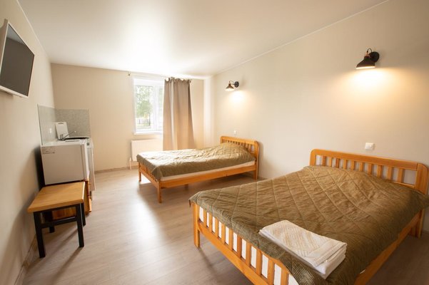 На площади один гектар расположены гостевые дома с комфортабельными номерами, рассчитанными на любой срок проживания. При оплате длительного проживания, например, на летний сезон, возможны скидки.