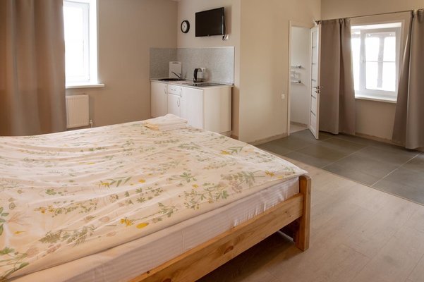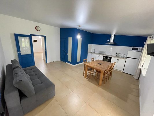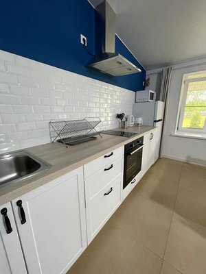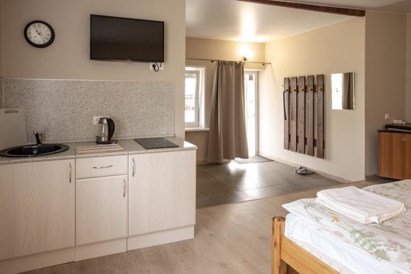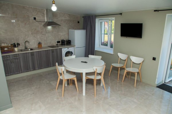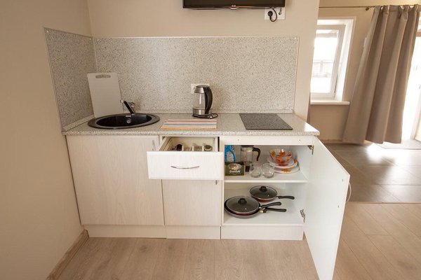 Во всех номерах есть обеденные зоны и кухни, оборудованные современной техникой, такой как варочная панель, холодильник, чайник и посуда. В санузлах установлены стиральные машины.