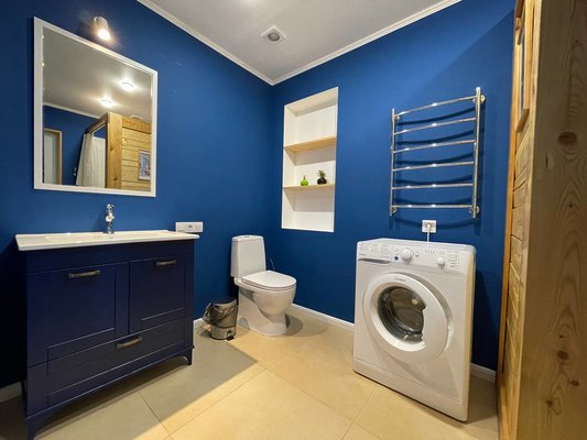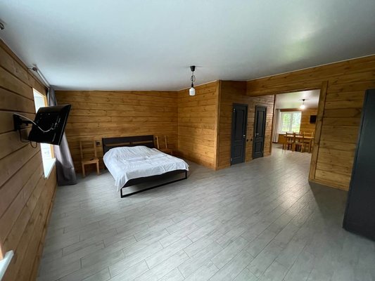 Гостевой дом оснащен банным комплексом, который включает финскую и турецкую бани. В шаговой доступности от домовладения находятся сосновый и смешанный леса, озеро, спортивный комплекс со своим стадионом и бассейном, а зимой можно посетить ледовый каток.
