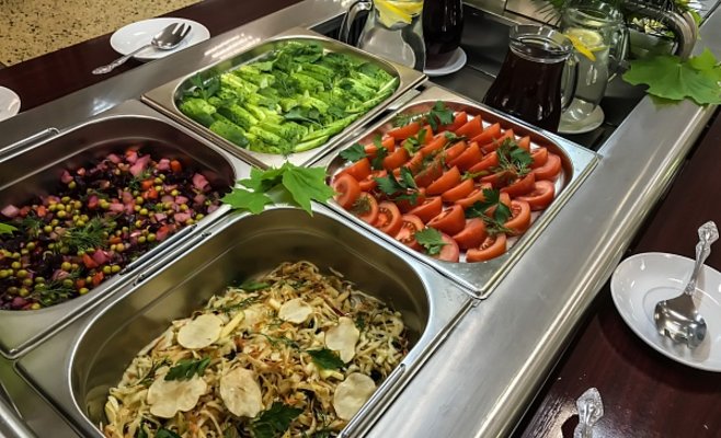 В санатории гостям предлагается трехразовое питание по системе "Шведский стол".