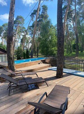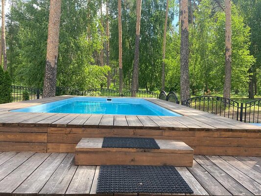 Просторный бассейн с горкой и водопадом идеально подойдет для отдыха с детьми, празднования событий и просто для расслабляющего времяпровождения.