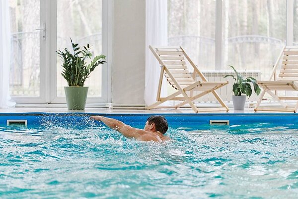 Парк-отель «Паустовский» предлагает своим гостям отдохнуть и расслабиться в просторном плавательный бассейне с панорамными окнами с видом на сосновый лес. В нем отдыхающие могут освежиться в жаркую погоду или поплавать в теплой воде в холодное время года. Проживающие в отеле плавают в бассейне по 30 минут в сутки бесплатно.