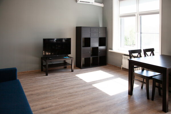 Современное трехэтажное здание с мансардным этажом предлагает комфортабельные 2-х и 4-х местные апартаменты. Каждые апартаменты оборудованы собственной кухней и индивидуальным санузлом. Светлые и уютные номера полностью укомплектованы всем необходимым для длительного проживания: здесь есть сплит-система, плита, микроволновка, электрочайник, холодильник и стиральная машина. В санузле предусмотрены ванна или душ, а также туалетные принадлежности, халаты и тапочки для вашего удобства.
