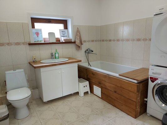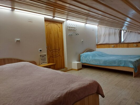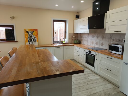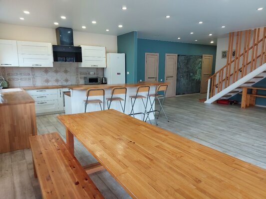 Просторный дом вмещает до 15 гостей в 4 спальных комнатах, с возможностью предоставления детской кроватки. К вашим услугам полностью оборудованная кухня, уютный зал для совместного досуга и 3 санузла. Дом располагает собственной террасой.