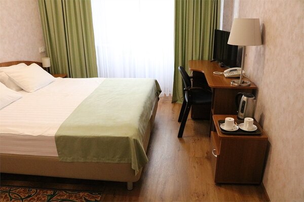 К услугам гостей 49 уютных номеров категорий «Бюджетный» и «Стандарт». Каждый номер оснащен всем необходимым для комфортного проживания: кабельным телевидением, холодильником, телефоном и отдельным санузлом. Предлагаются номера с односпальными или двуспальными кроватями.
