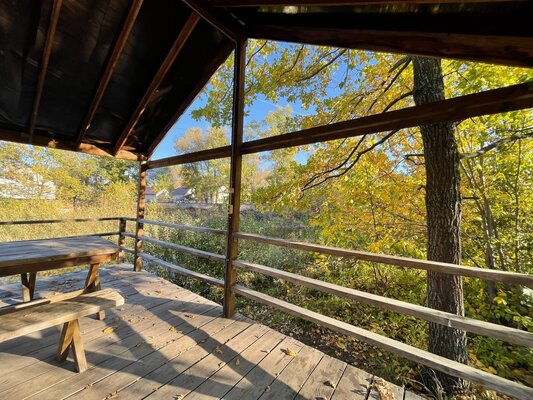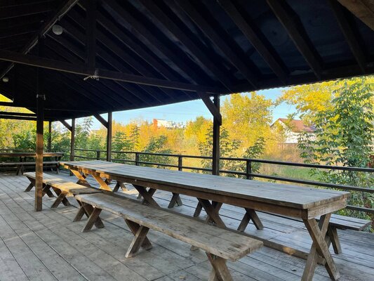 Беседка доступна для аренды на двенадцать часов — с 10:00 до 22:00, позволяя гостям в полной мере насладиться природой и уютной атмосферой.