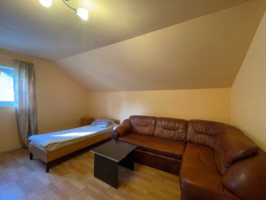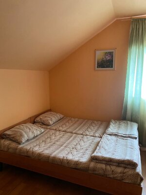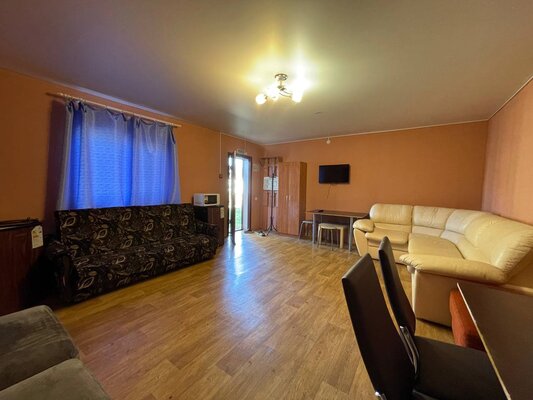 Коттедж вмещает до шести человек на основном месте и четыре на дополнительном. При выборе половины коттеджа возможно размещение трех человек на основном месте и одного на дополнительном.