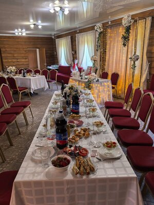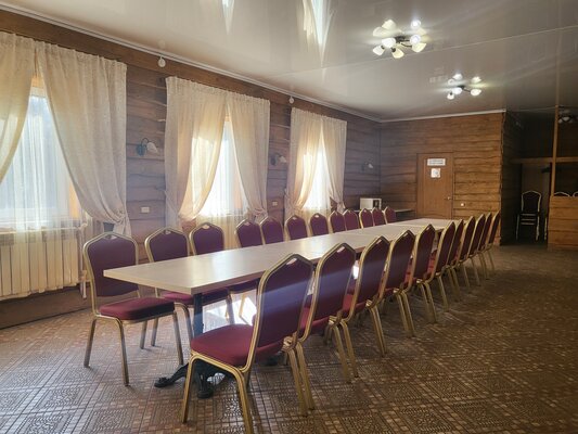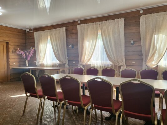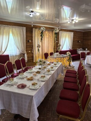 Просторный банкетный зал доступен для организации мероприятий вместимостью до ста гостей. Здесь удобно проводить торжества любого формата: свадебные торжества, дни рождения, корпоративные мероприятия и семейные праздники.