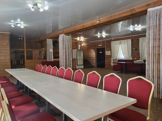 Для проведения мероприятий гостям предлагается просторный банкетный зал, рассчитанный на размещение до ста человек, что гарантирует комфорт и уют для каждого участника торжества. Дополнительно предоставляются услуги ведущего и запуск праздничного фейерверка, что позволяет создать незабываемую атмосферу праздника.