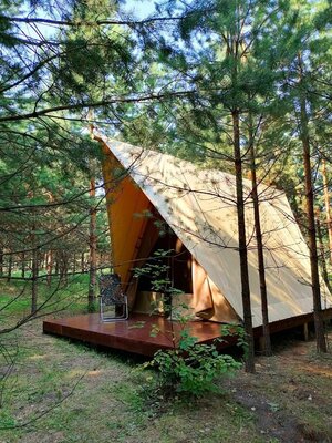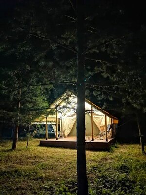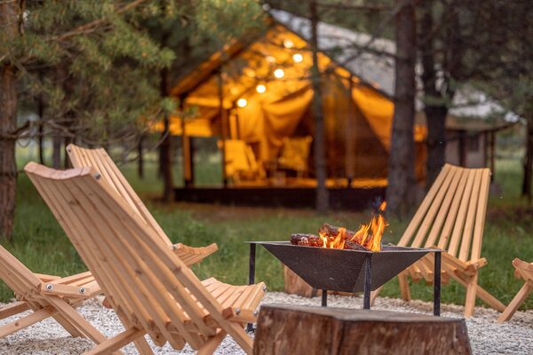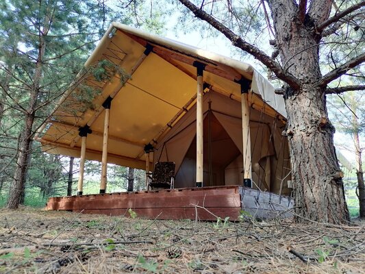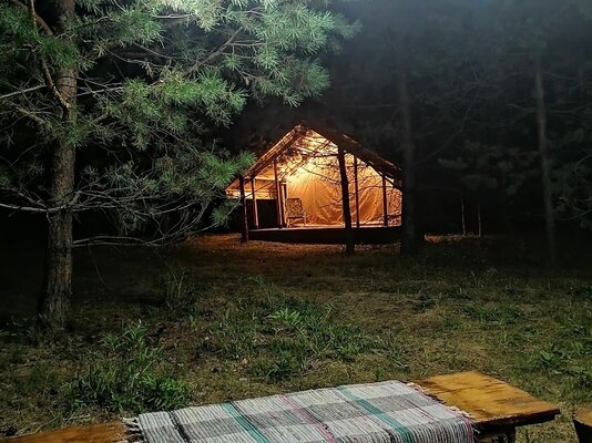 Здесь вы получаете размещение на ухоженной и обработанной территории + доступ ко всей инфраструктуре нашего глэмпинга (санузлы, беседка с летней кухней, мангальная зона и прочие приятные мелочи, которые не нужно тащить с собой), электричеству и питьевой воде.